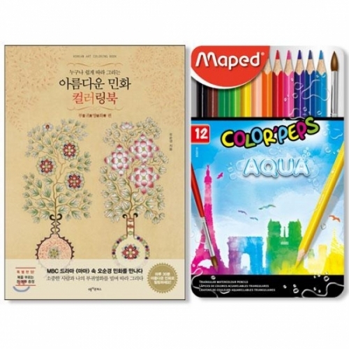 - 마패드 컬러펩스 수채색연필 틴 12색 and 아름다운민화 컬러링북 부귀영화편