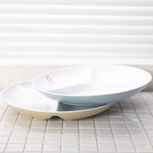 - 투톤칼라 원형 나눔접시 3절 베이지 블루 (색상랜덤발송)