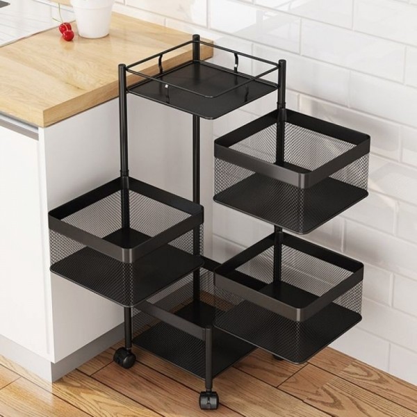 혼시티 철제 트롤리 이동 회전 4단 선반 수납장 블랙